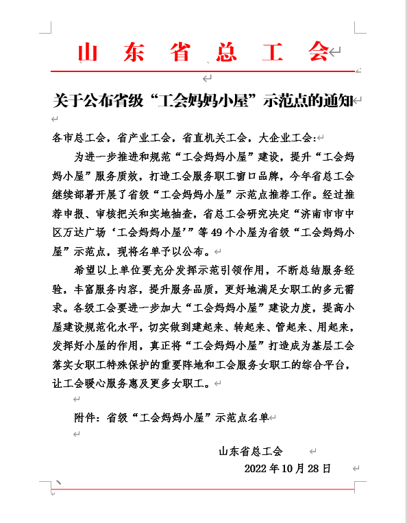 為進(jìn)一步推進(jìn)和規(guī)范“工會(huì)媽媽小屋”建設(shè),提升“工會(huì)媽媽小屋”服務(wù)質(zhì)效,打造工會(huì)服務(wù)職工窗口品牌,今年省總工會(huì)繼續(xù)部署開展了省級(jí)“工會(huì)媽媽小屋”示范點(diǎn)推薦工作。經(jīng)過推薦申報(bào)、審核把關(guān)和實(shí)地抽查,青島明月海藻集團(tuán)“工會(huì)媽媽小屋”獲評(píng)省級(jí)“工會(huì)媽媽小屋”示范點(diǎn)。