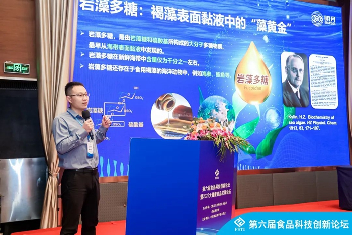 青島明月海藻生物健康科技集團副總裁孫占一,在功能食品論壇上分享了海洋創(chuàng)新型原料巖藻多糖在去除幽門螺桿菌、改善胃腸道、提高免疫力方面的健康功效。