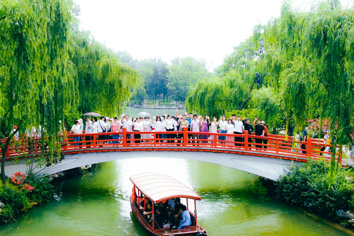 去往江蘇線的同事們則置身于煙雨江南,領略了鐘靈毓秀的自然風光。看靈山大佛、賞拈花一笑、觀瘦西湖的初夏。他們在吳儂軟語的陪伴下,品味了地道的淮揚菜系,欣賞了巧奪天工的園林設計。在這里有湖光與山色,詩意與蟬鳴,青石板路與小橋人家;在這里感受“春水碧于天、畫船聽雨眠”的意境;在這里欣賞“壚邊人似月,皓腕凝霜雪”的溫婉;在這里體驗“春未老,風細柳斜斜”的浪漫。