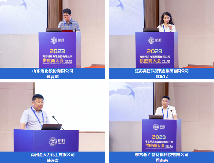山東?;煞萦邢薰緦O言鵬、江蘇高捷節能裝備集團有限公司姚岷民、青州金天力化工有限公司韓濤吉、東營臨廣新材料科技有限公司周南南幾位供應商代表上臺分享“他們和明月的故事”。通過他們的講述,讓大家全方位、多角度地了解了一個充滿情懷與溫度的多彩明月。