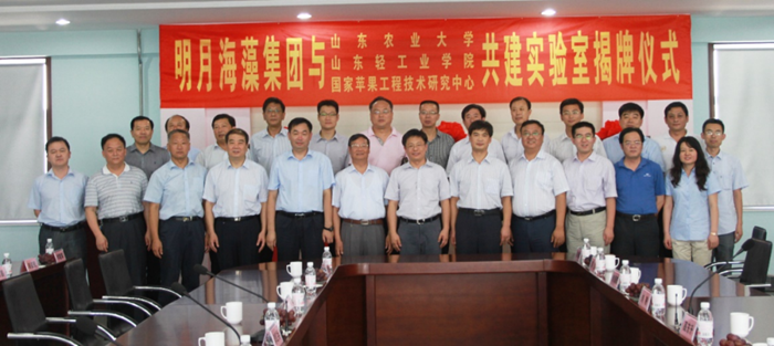 2012年7月26日,明月海藻集團與山東農業大字、山東輕工業學院(齊魯工業大學)、國家蘋果工程技術研究中心共建實驗室揭牌