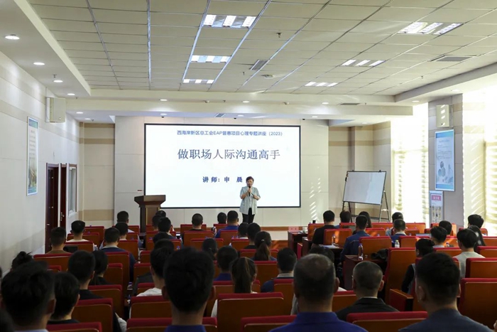 本次講座,由青島市總工會總特聘心理專家、青島電視臺、電臺特邀心理嘉賓、資深 EAP(員工心理援助)培訓師申晨主講。她從職場人際溝通的意義和價值、基本常識、影響溝通質量和結果的因素,以及如何成為職場溝通高手這四個方面進行了深入淺出地講解。她結合實例,闡述了人際溝通的重要性以及如何提高溝通效率,贏得了在場聽眾的熱烈掌聲。