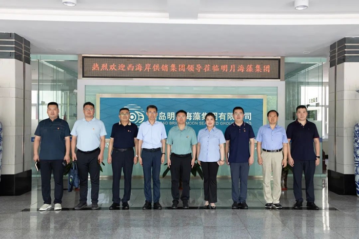西海岸新區供銷社黨委委員、理事會副主任欒炳偉、流通管理部部長薛博文、鹽業公司董事長徐貞普、鹽業公司監事長徐培琳、鹽業公司副總經理陳凌波代表西海岸新區供銷社為明月海藻集團贈送了一批消暑清涼物資。明月海藻集團黨委副書記楊曉菁、黨委委員李可昌、黨工群團中心主任封安波等參加接待并進行了深入交流。
