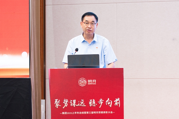 集團黨委副書記、總裁劉兆志向大會作《2025年上半年工作總結報告》。他指出,面對嚴峻市場環境,集團精準研判,以“聚勢”的戰略定力整合資源、凝聚共識,以“謀遠”的創新視野優化布局、蓄能未來。明月人圍繞年度經營目標,聚焦主業,深化變革,在“穩”字上下功夫,在“進”字上求實效,推動市場根基持續鞏固,創新動力顯著增強,運營效能穩步提升,各項關鍵經營指標有力印證了集團發展“穩中有進、進中提質”的良好態勢。
