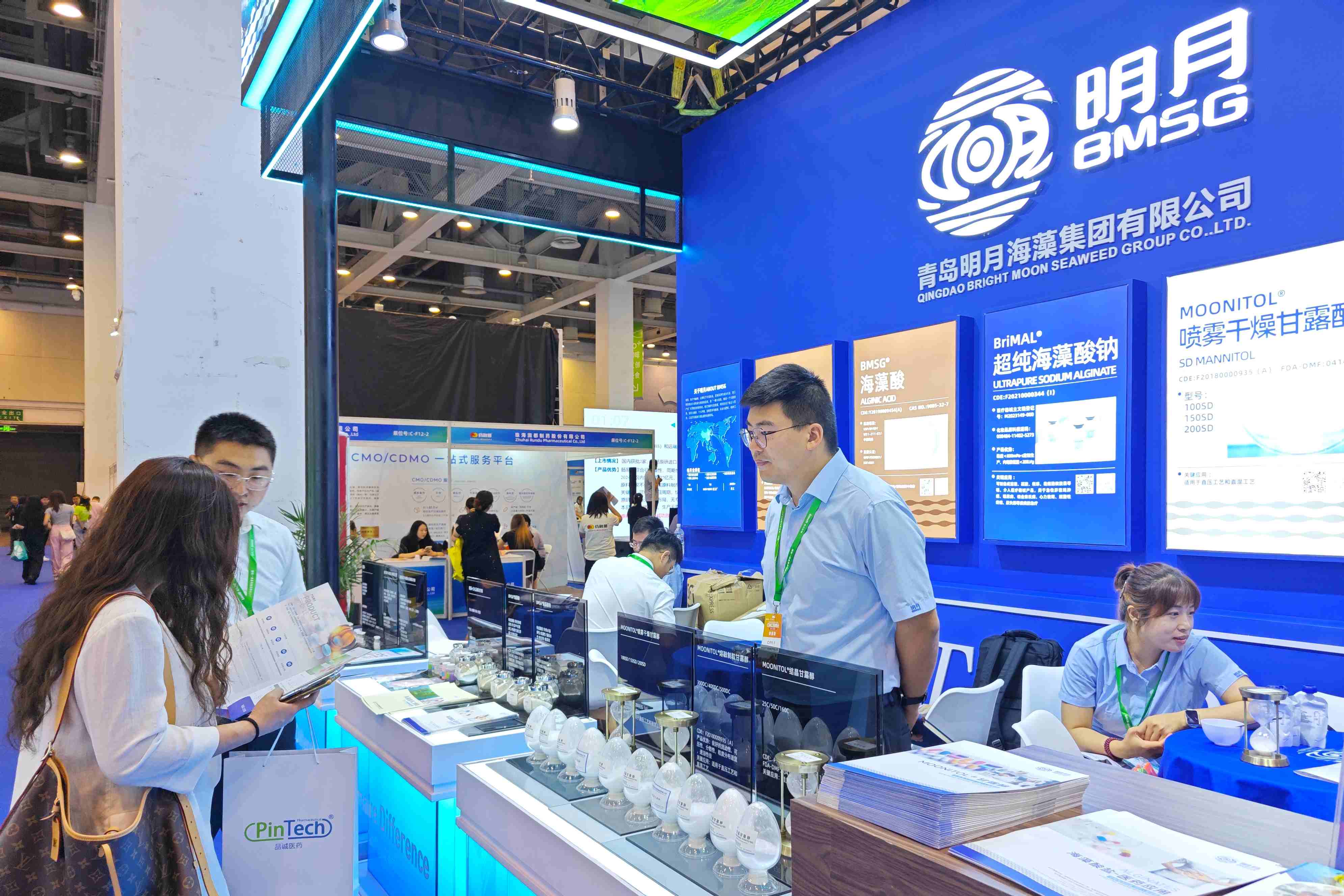 作為全球“海藻+健康”解決方案的領導者,明月攜多款核心產品精彩亮相,包括海藻酸鈉、海藻酸、甘露醇、山梨醇、超純海藻酸鈉等,展示了源自海洋的創新力量如何助力醫藥行業的可持續升級。展位現場,明月專業的銷售與研發團隊與眾多客戶深入交流,獲得廣泛關注與合作意向。
